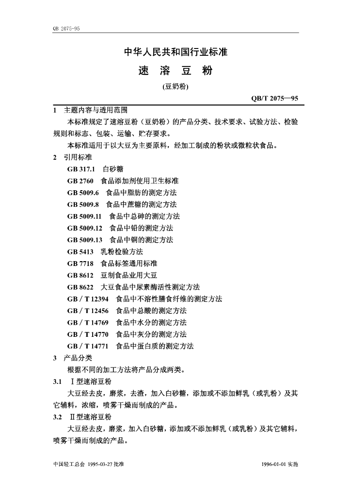 QB/T 2075-1995 速溶豆粉