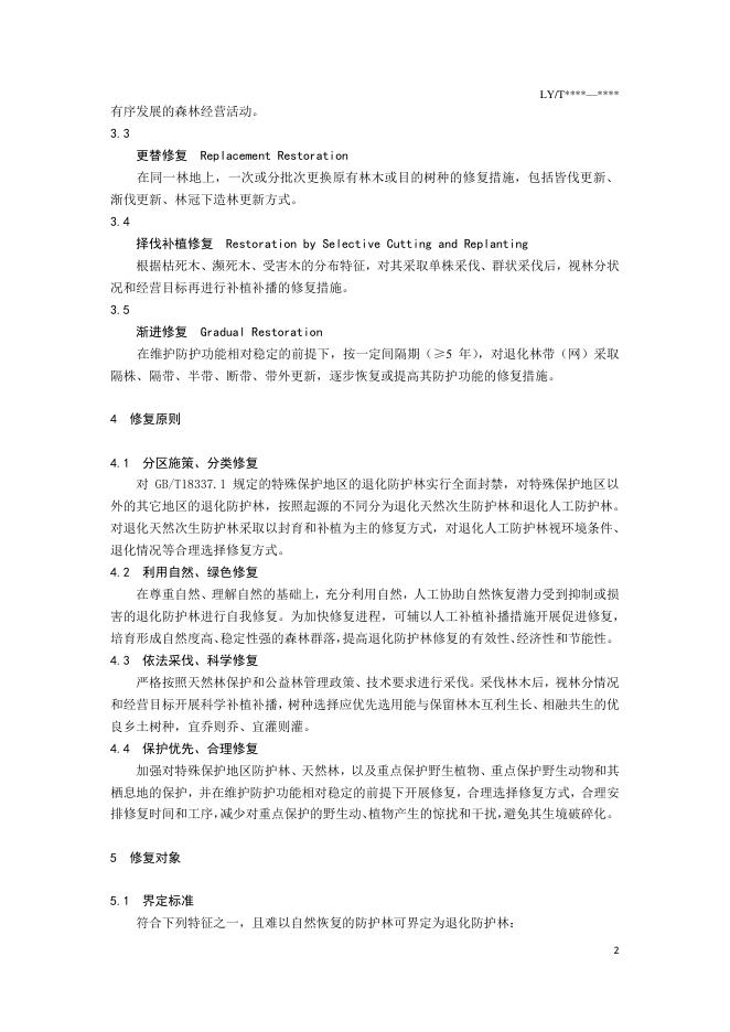 LY/T 3179-2020 退化防护林修复技术规程
