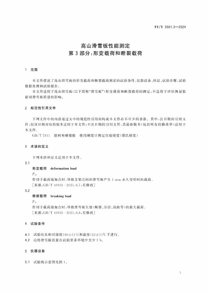 TY/T 3501.3-2024 高山滑雪板性能测定 第3部分:形变载荷和断裂载荷