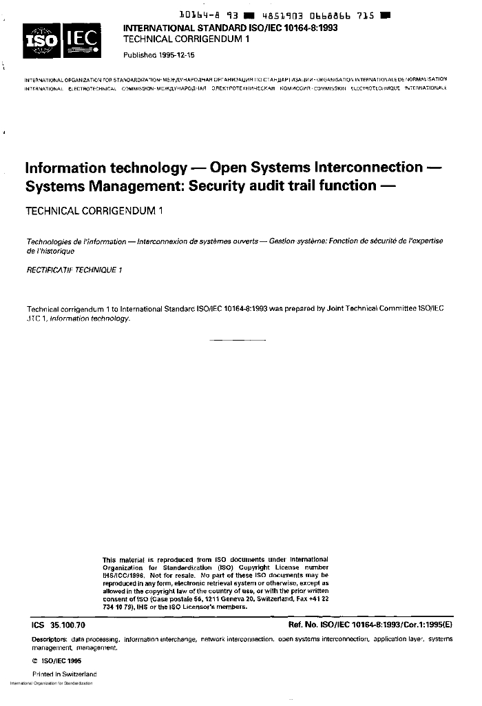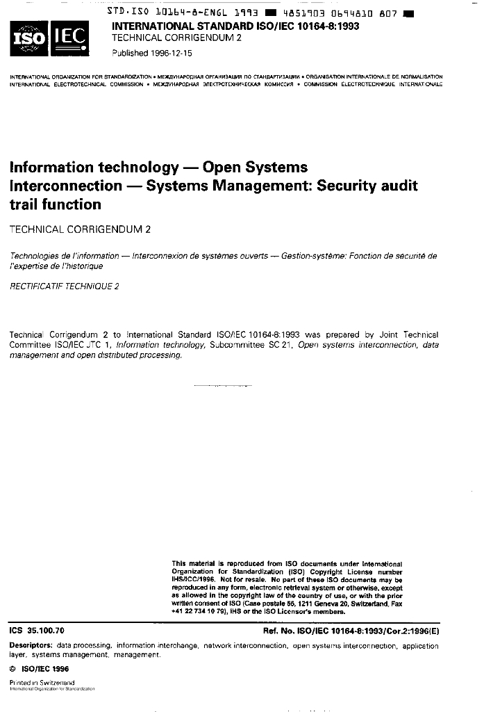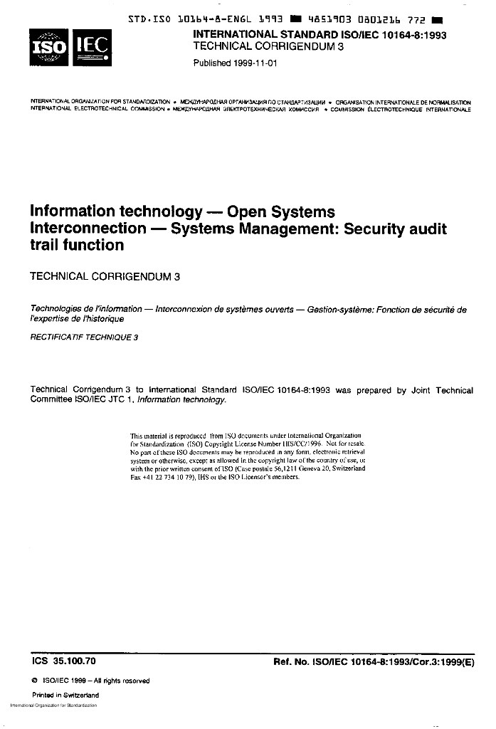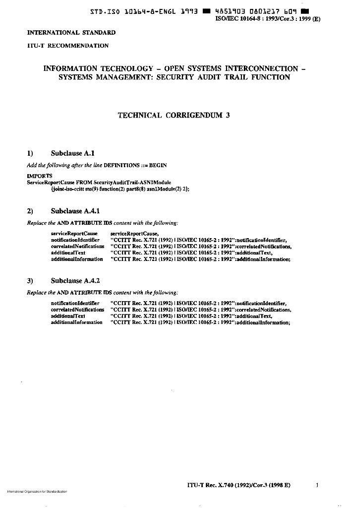 ISO/IEC 10164-8-1993/Cor 3-1999 勘误3:信息技术 开放式系统互连 系统管理:安全检查跟踪功能