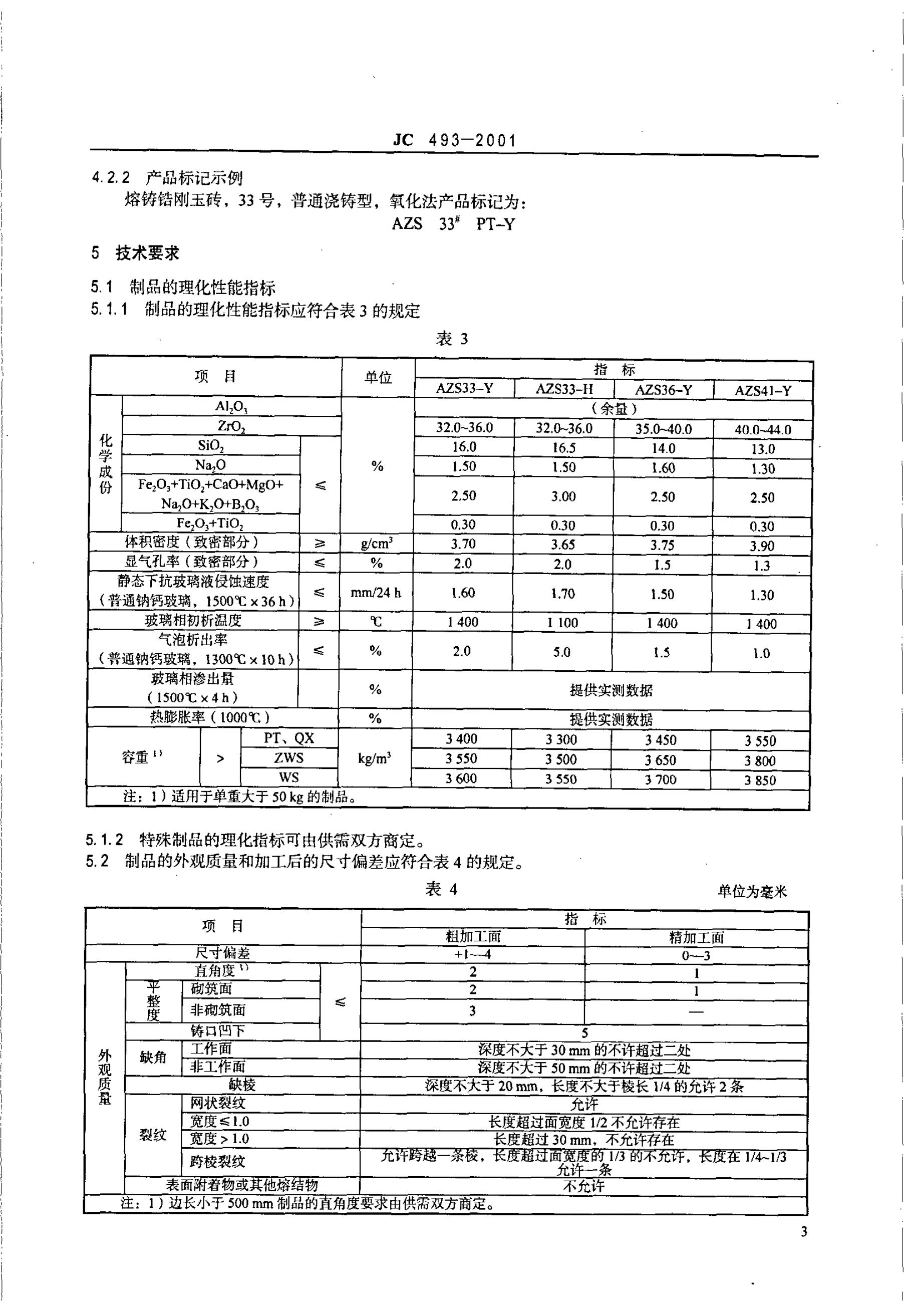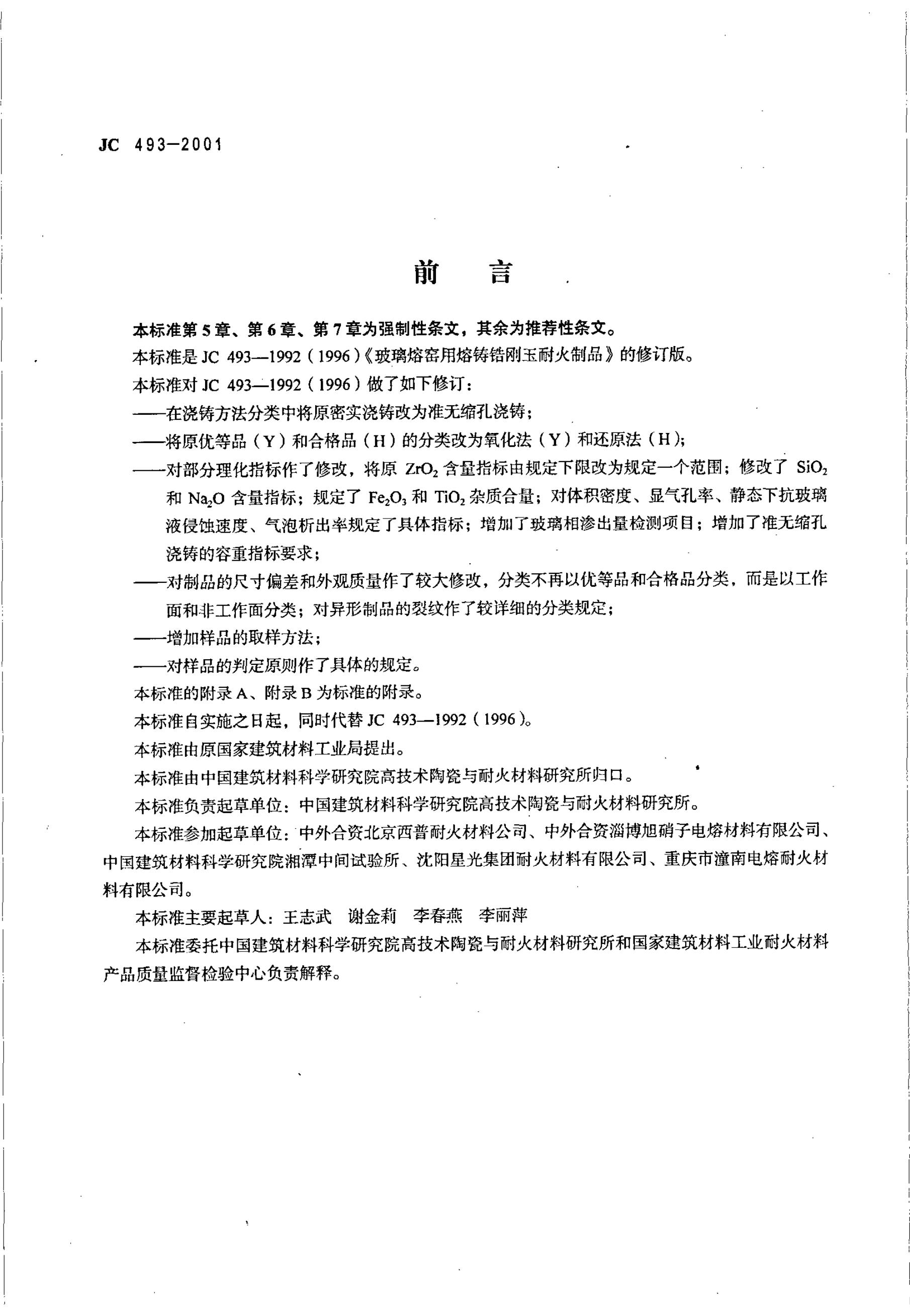 JC 493-1991 玻璃熔窑用熔铸锆刚玉耐火制品
