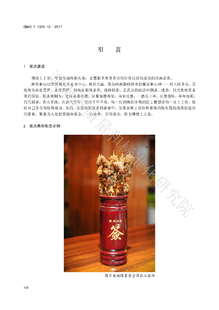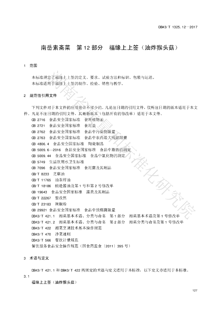 DB43/T 1325.12-2017 南岳素斋菜 第12部分:福缘上上签(油炸猴头菇)