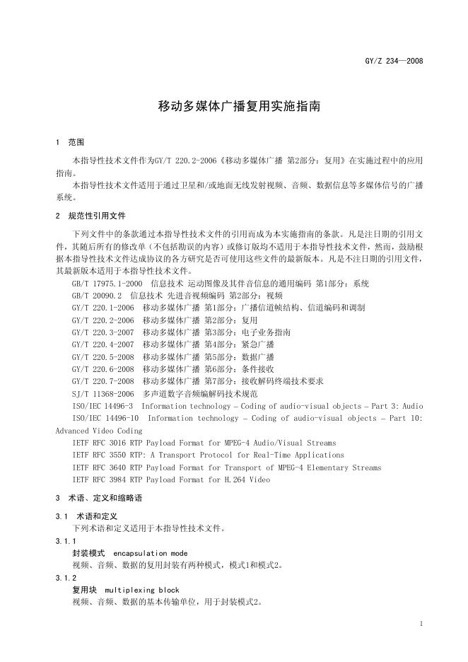 GY/T 234-2008 移动多媒体广播复用实施指南