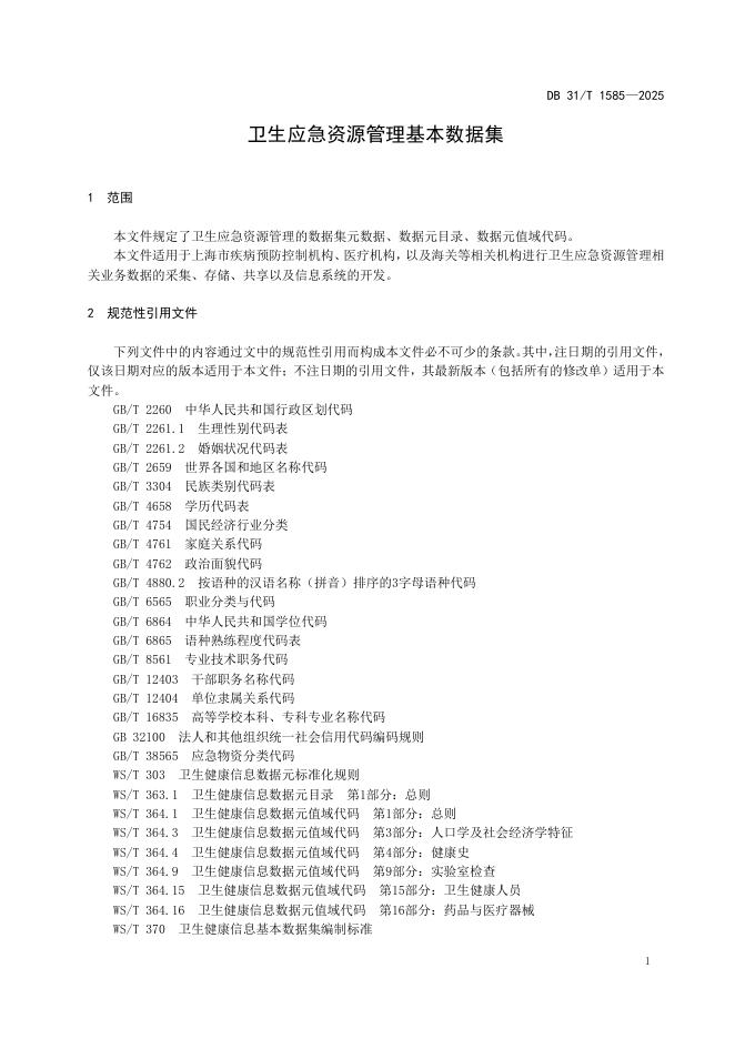 DB31/T 1585-2025 卫生应急资源管理基本数据集