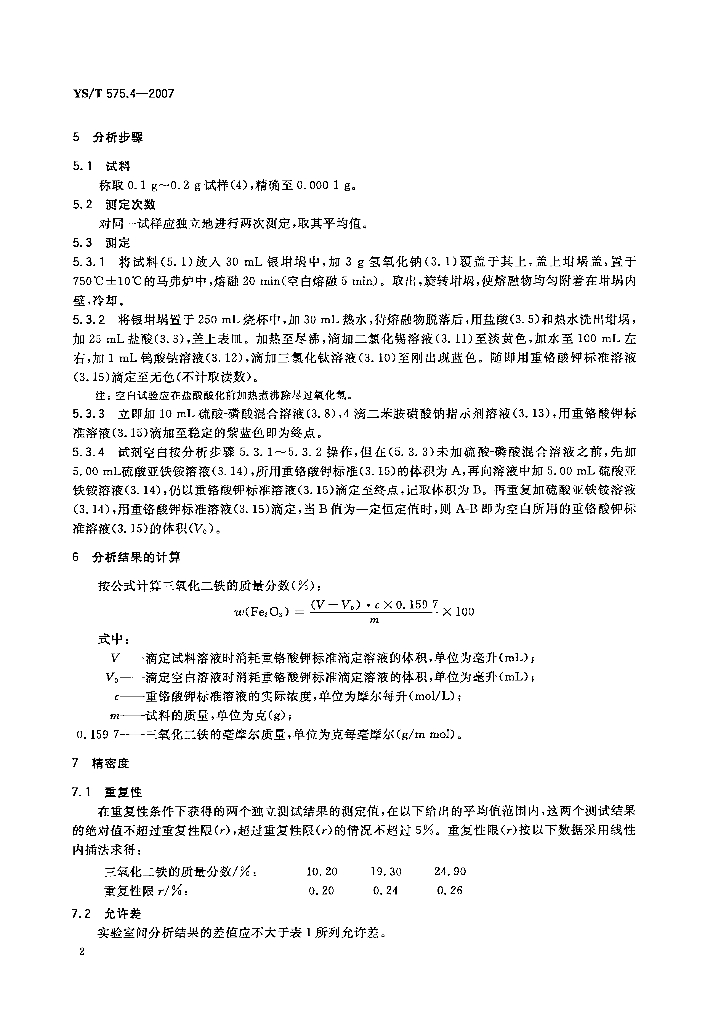 YS/T 575.4-2007 铝土矿石化学分析方法 第4部分:三氧化二铁含量的测定重铬酸钾滴定法