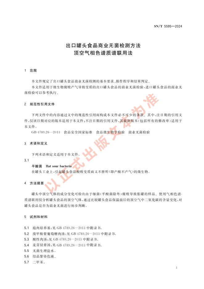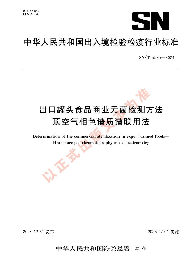 SN/T 5595-2024 出口罐头食品商业无菌检测方法 顶空气相色谱质谱联用法
