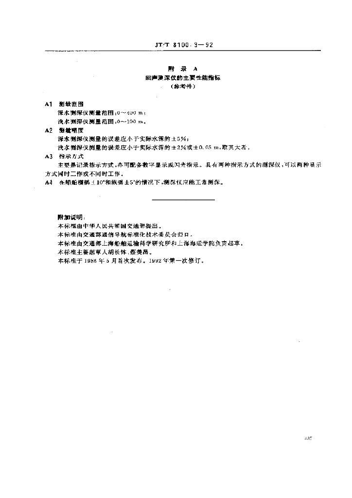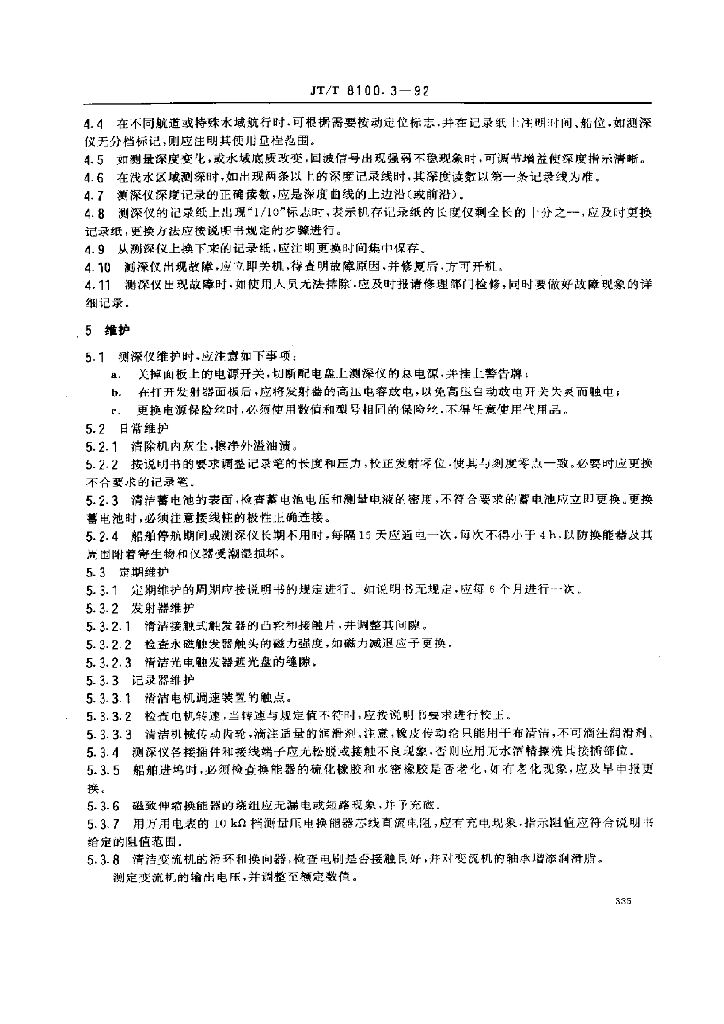 JT/T 8100.3-1992 船用通信导航设备的安装、使用、维护、修理技术要求回声 测深仪