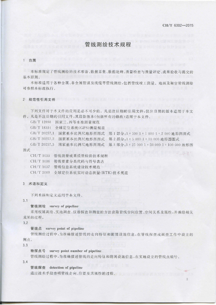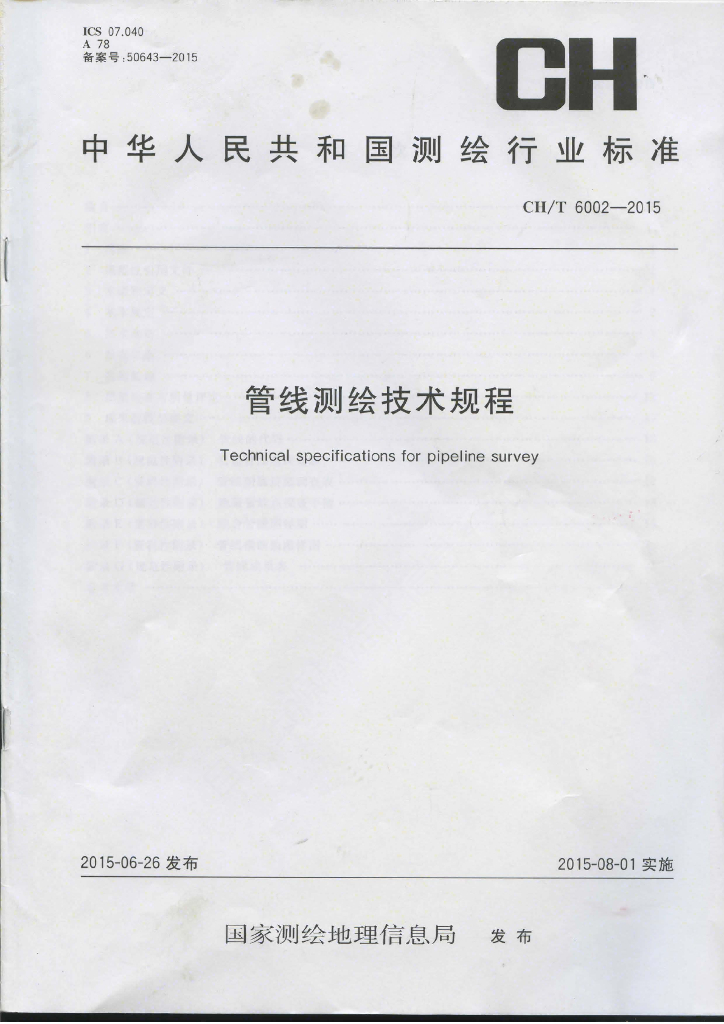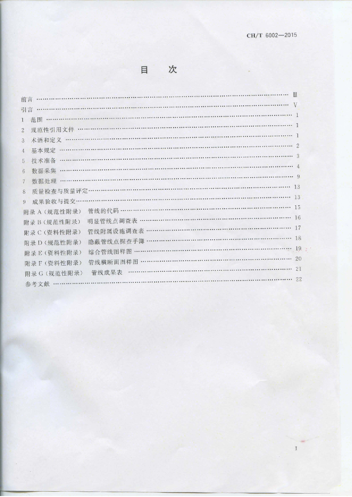 CH/T 6002-2015 管线测绘技术规程