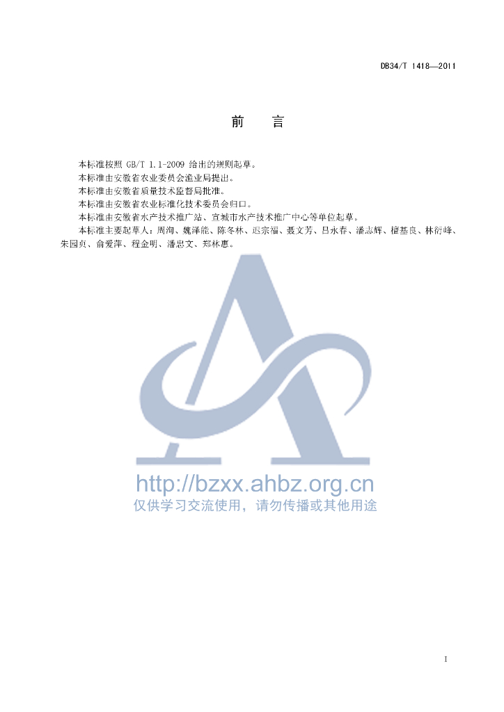 DB34/T 1418-2011 无公害光倒刺鲃养殖技术规程