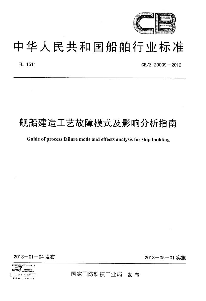 CB/Z 20009-2012 舰船建造工艺故障模式及影响分析指南