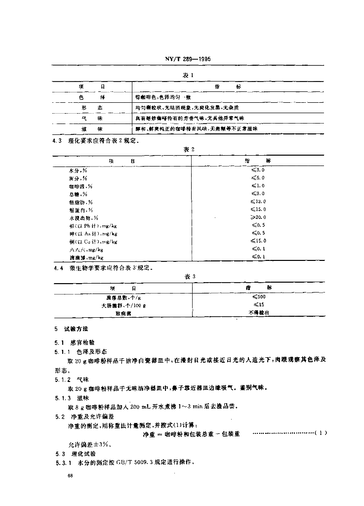 NY/T 289-1995 绿色食品 咖啡粉