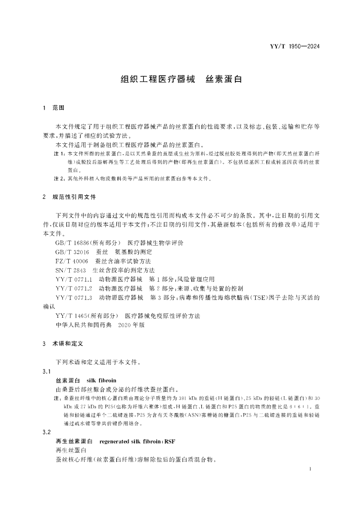 YY/T 1950-2024 组织工程医疗器械 丝素蛋白