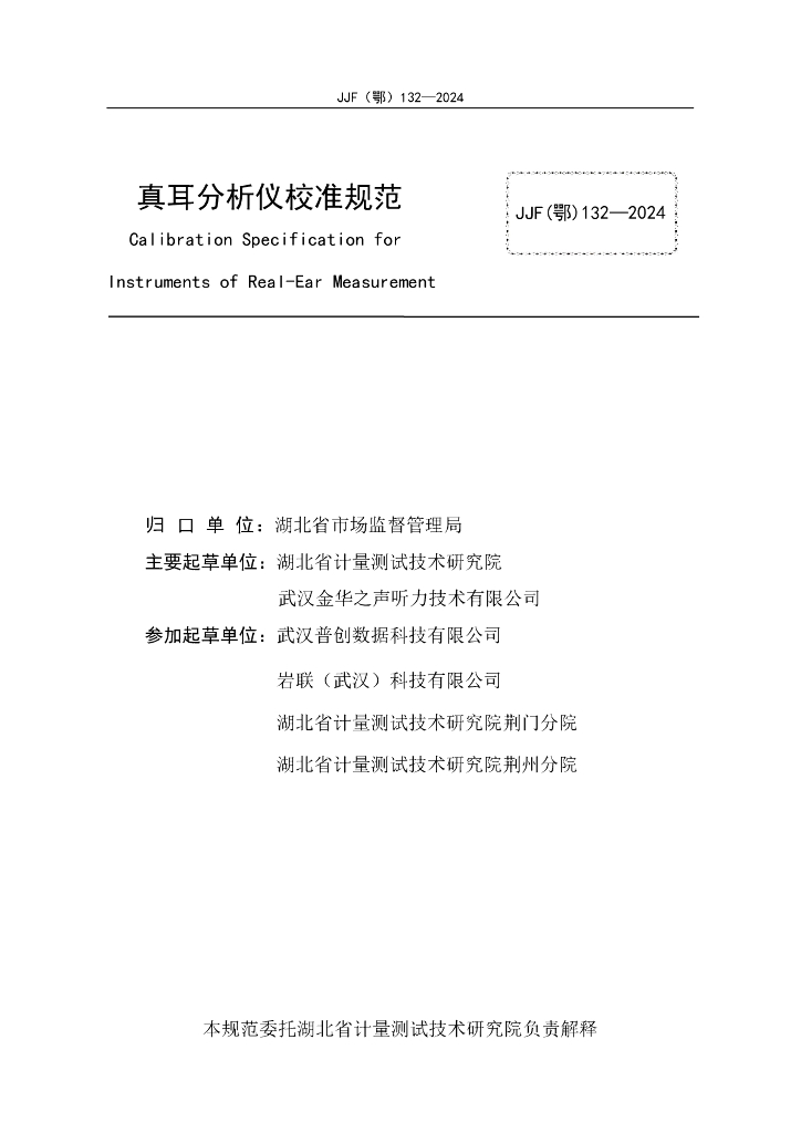 JJF(鄂)132-2024 真耳分析仪校准规范