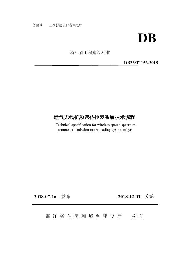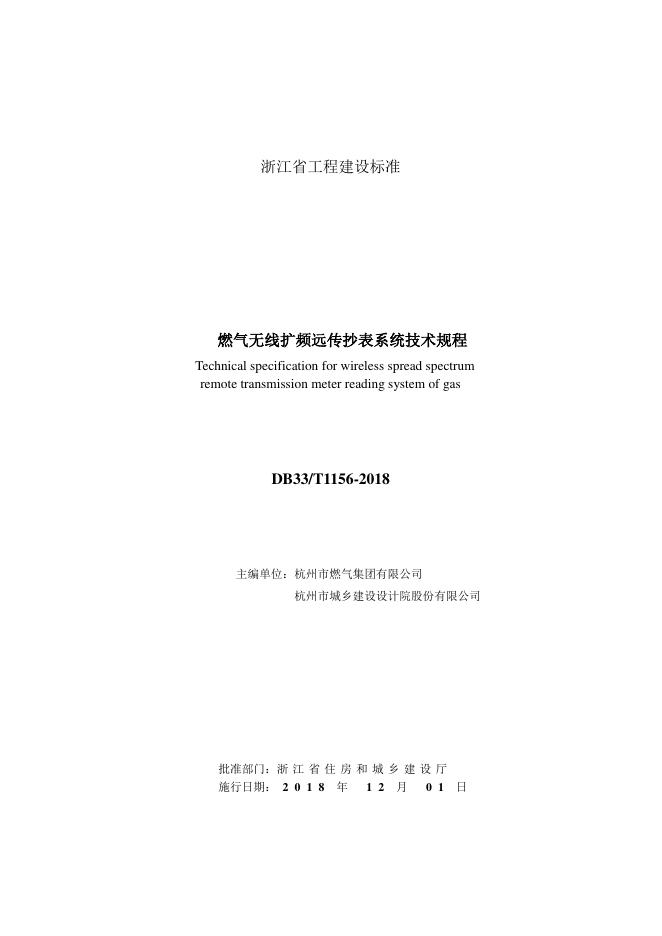 DB33/T 1156-2018 燃气无线扩频远传抄表系统技术规程