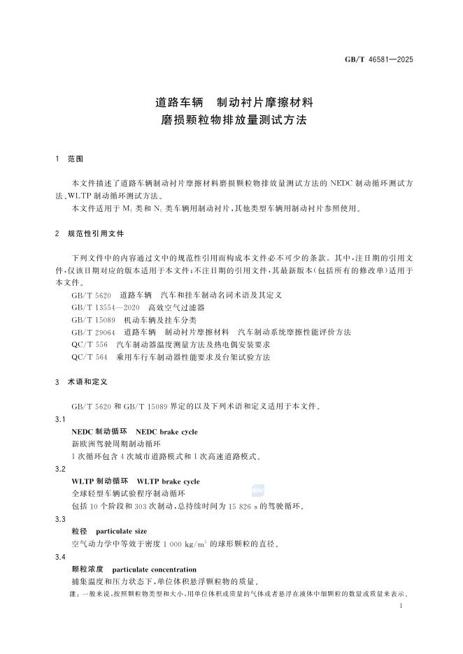 GB/T 46581-2025 道路车辆 制动衬片摩擦材料 磨损颗粒物排放量测试方法