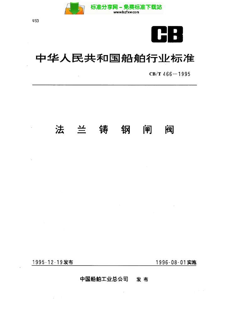 CB/T 466-1995 法兰铸钢闸阀