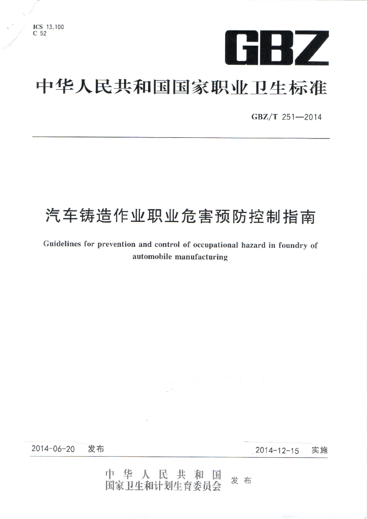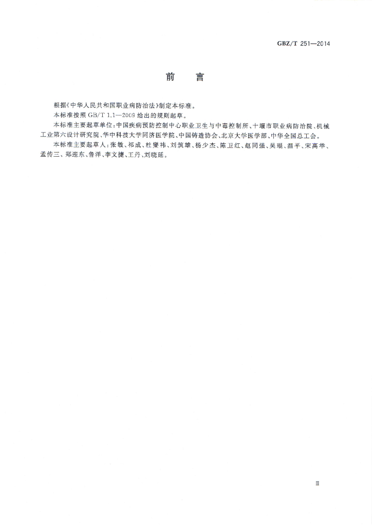 中国疾病预防控制中心职业卫生与中毒控制所、十堰市职业病防治院、机械工业第六设计研究院、华中科技大学同济医学院、中国铸造协会、北京大学医学部、中华全国总工会