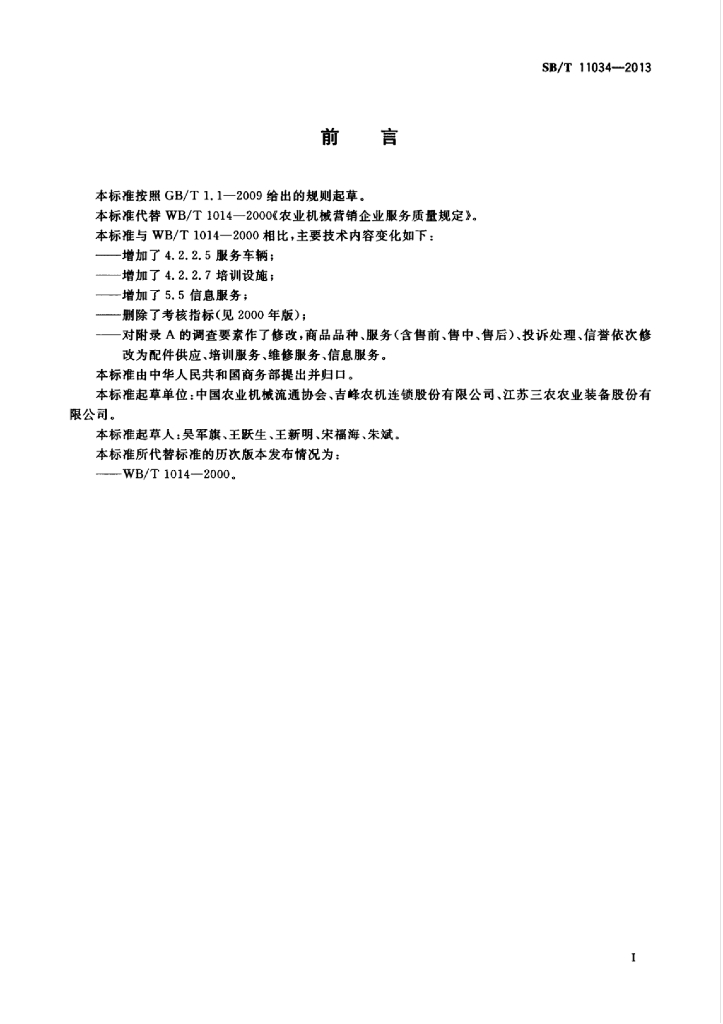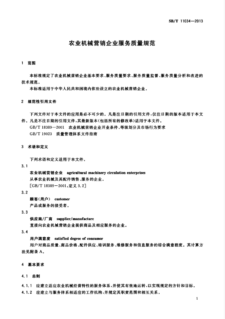 SB/T 11034-2013 农业机械营销企业服务质量规范