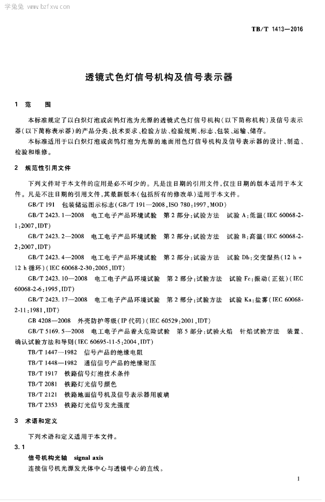 TB/T 1413-2016 透镜式色灯信号机构及信号表示器