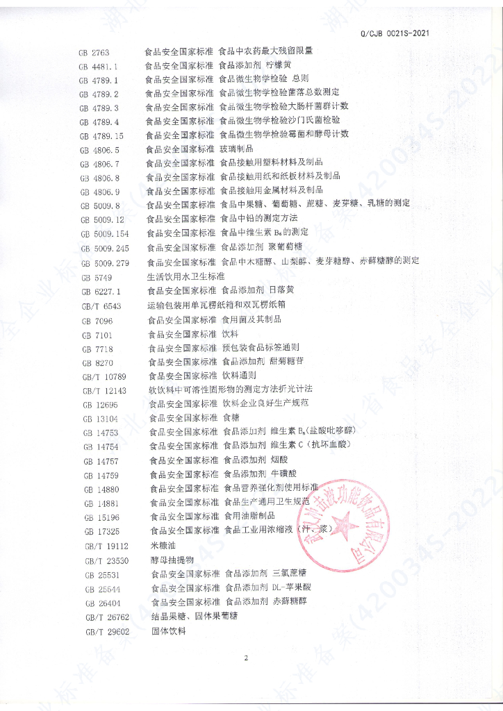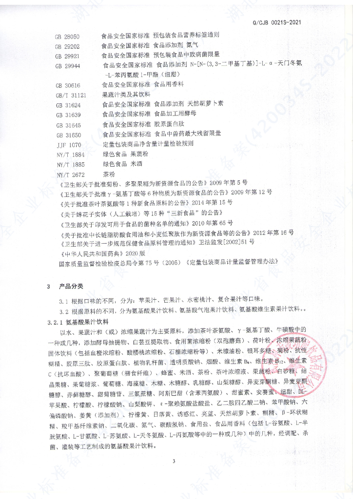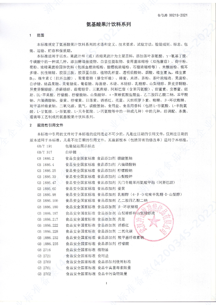 Q/CJB 0021S-2021 氨基酸果汁饮料系列
