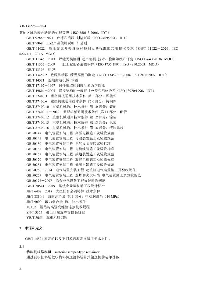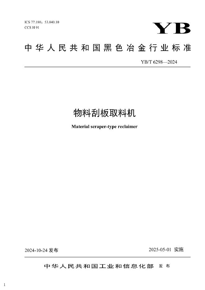 YB/T 6298-2024 物料刮板取料机