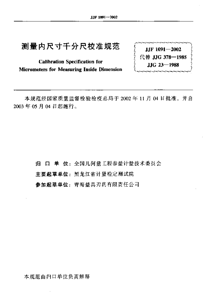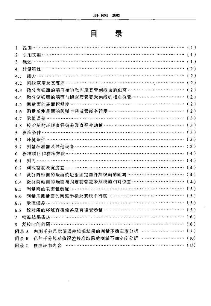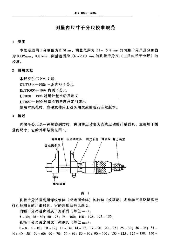 JJF 1091-2001 测量内尺寸千分尺校准规范