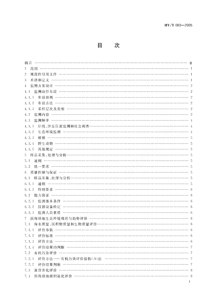 HY/T 080-2005 滨海湿地生态监测技术规程