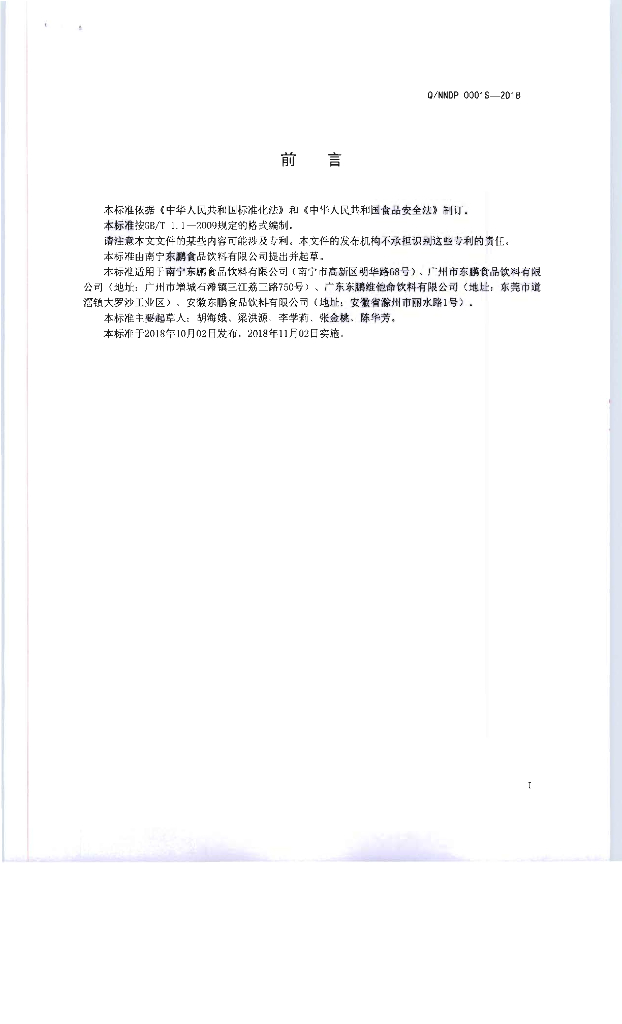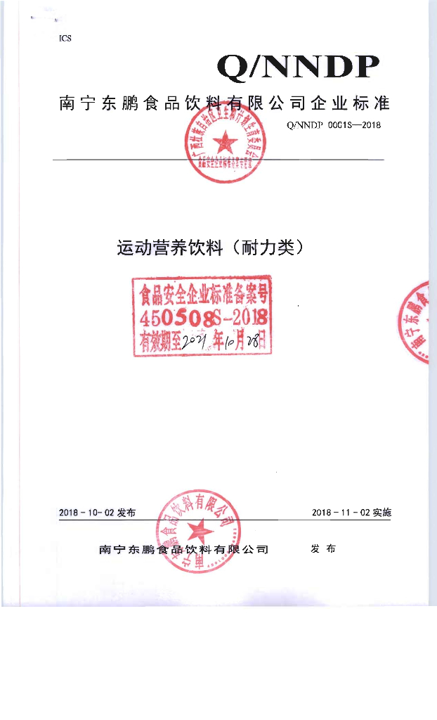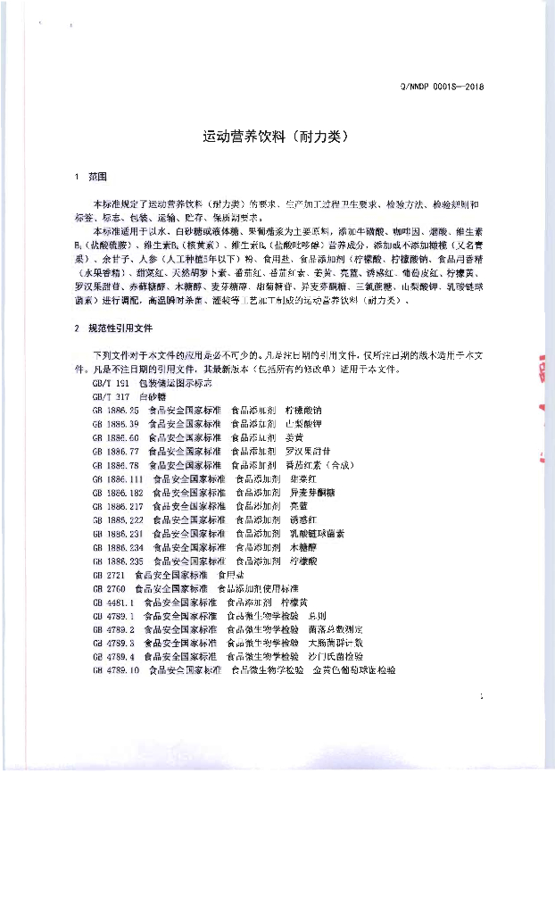 Q/NNDP 0001S-2018 运动营养饮料(耐力类)