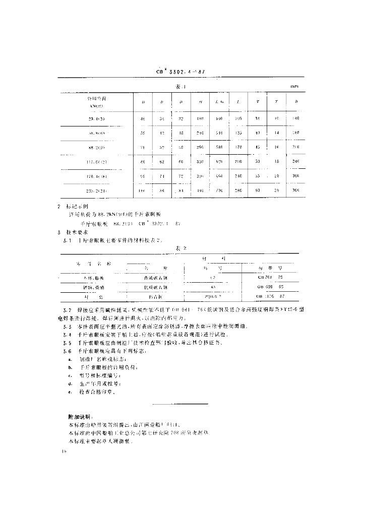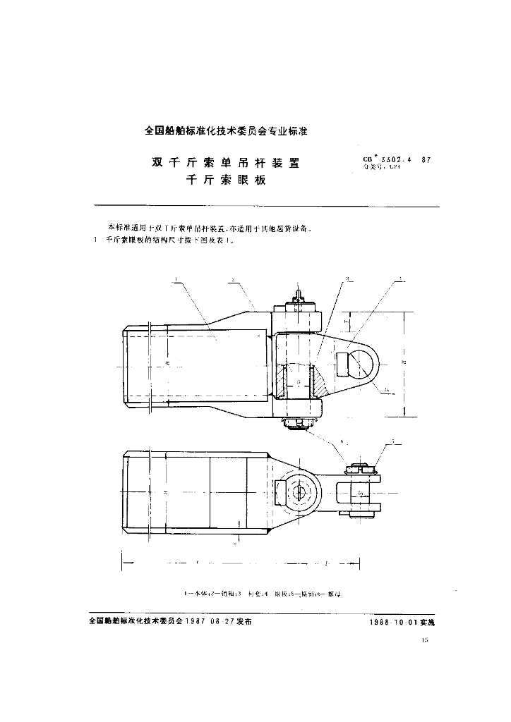 CB 3302.4-1987 双千斤索单吊杆装置 千斤索眼板