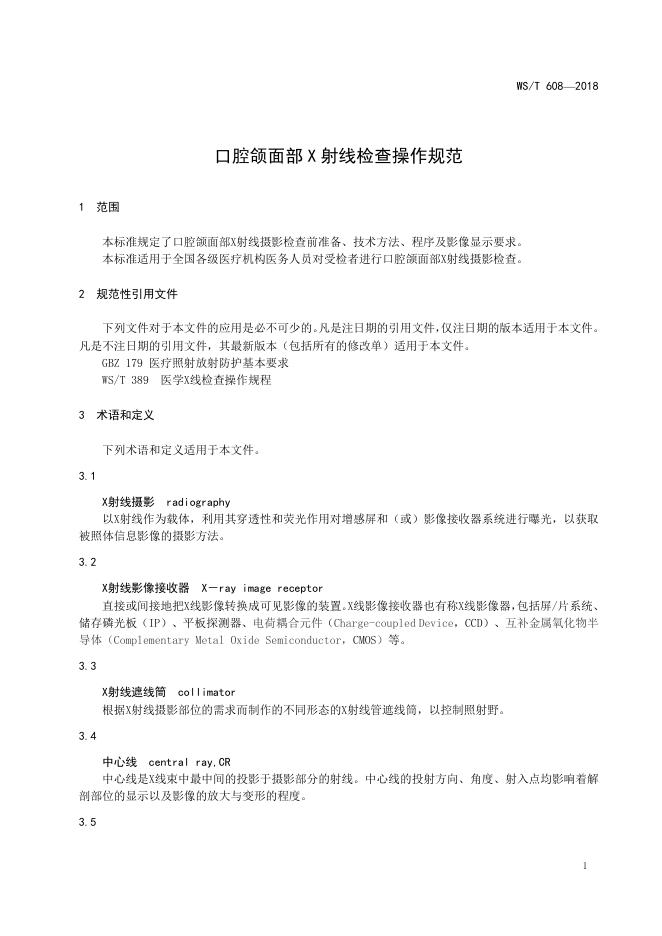 WS/T 608-2018 口腔颌面部X射线检查操作规范