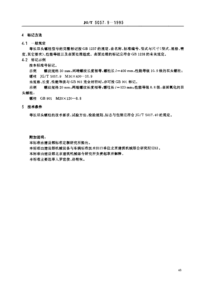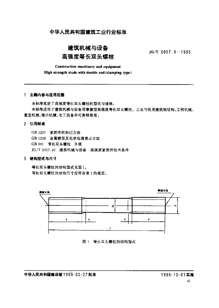 JG/T 5057.9-1995 建筑机械与设备 高强度等长双头螺柱
