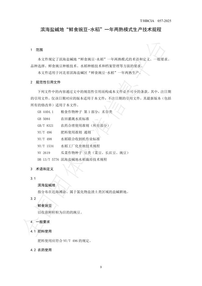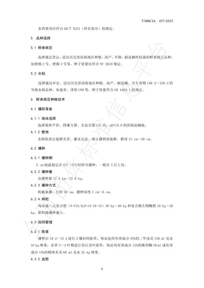 T/HBCIA 057-2025 滨海盐碱地“鲜食豌豆-水稻 ” 一年两熟模式生产技术规程