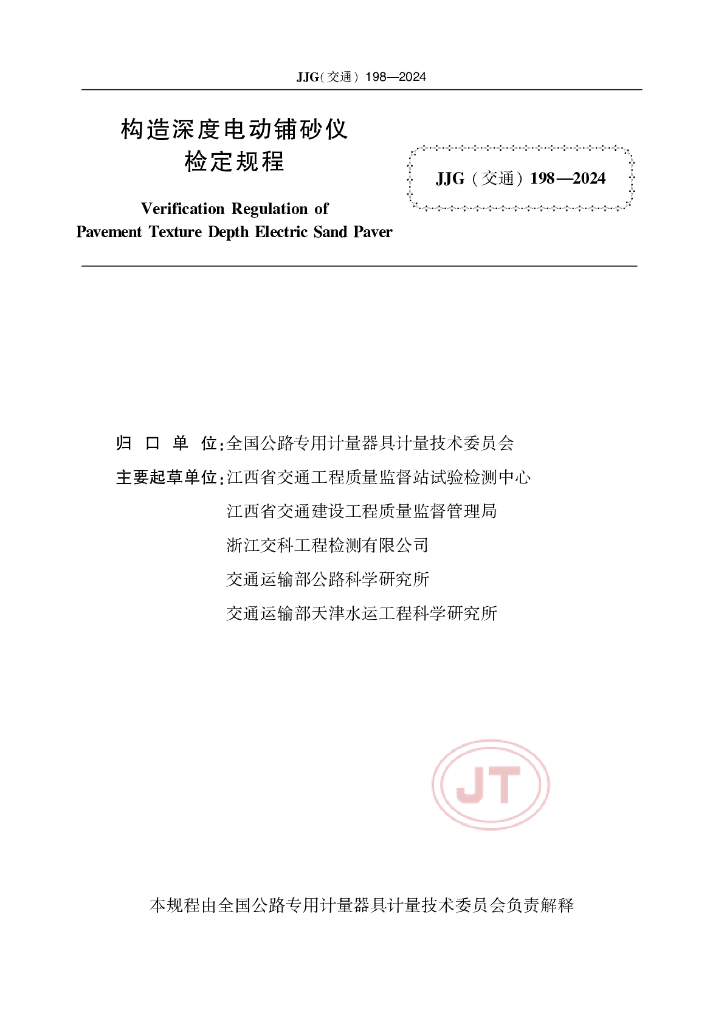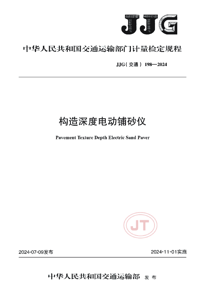 JJG(交通)198-2024 构造深度电动铺砂仪