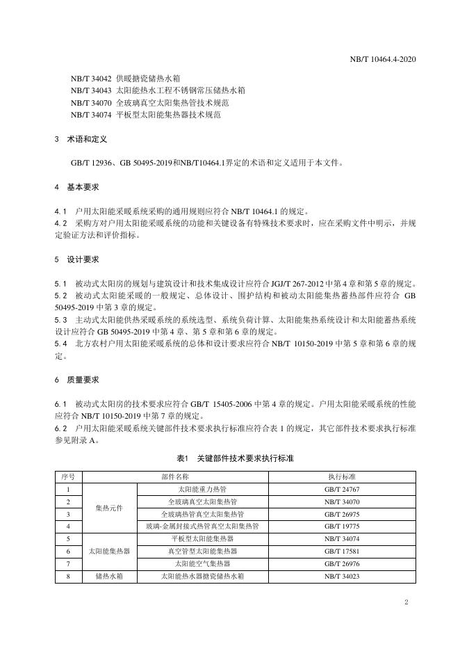 NB/T 10464.4-2020 太阳能热利用系统采购技术规范 第4部分:户用太阳能采暖系统