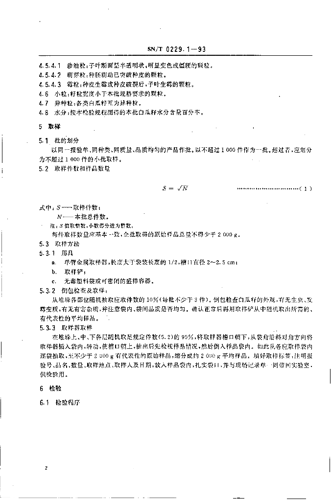 SN/T 0229.1-1993 出口白瓜籽检验规程