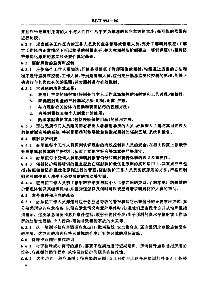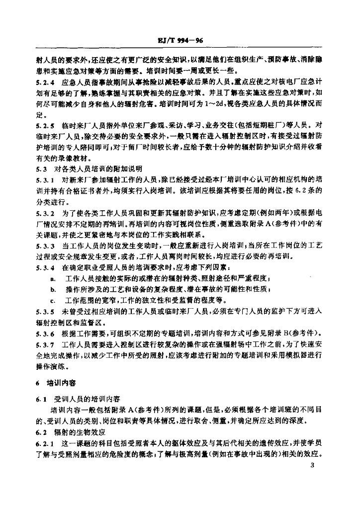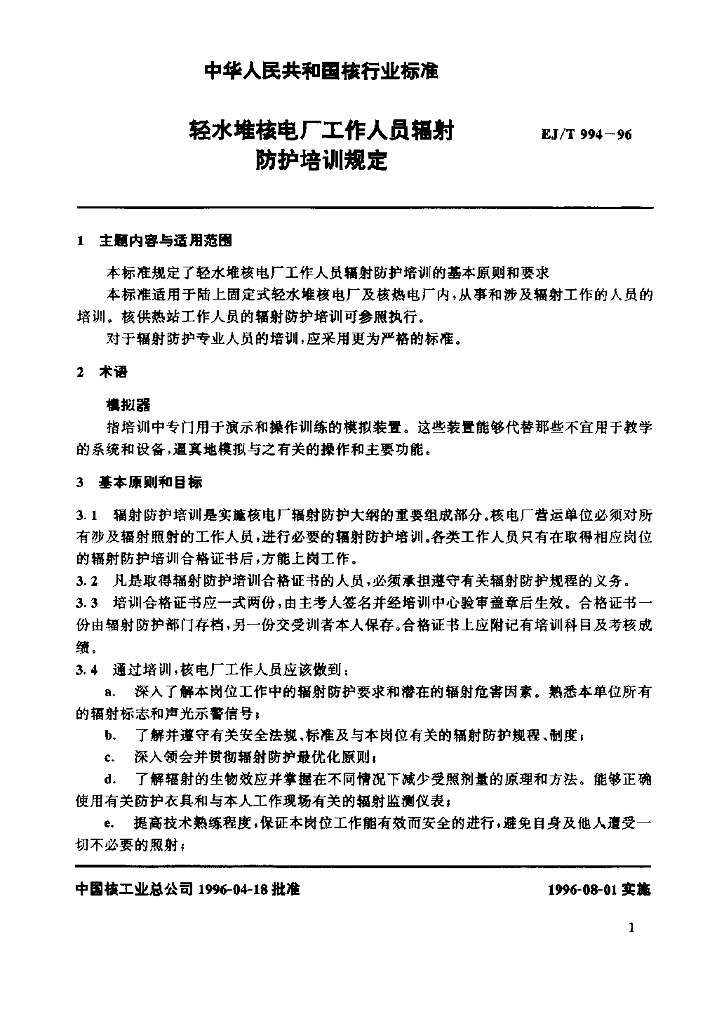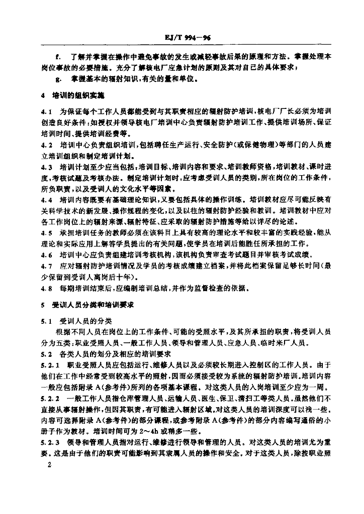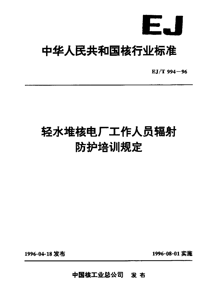 EJ/T 994-1996 轻水堆核电厂工作人员辐射防护培训规定