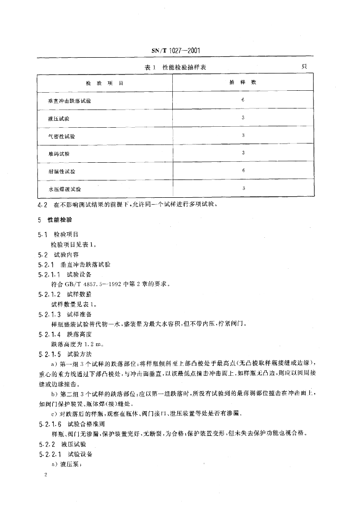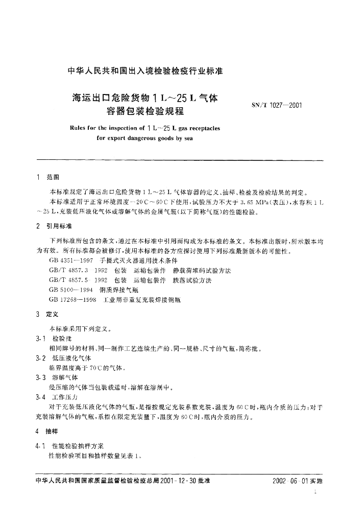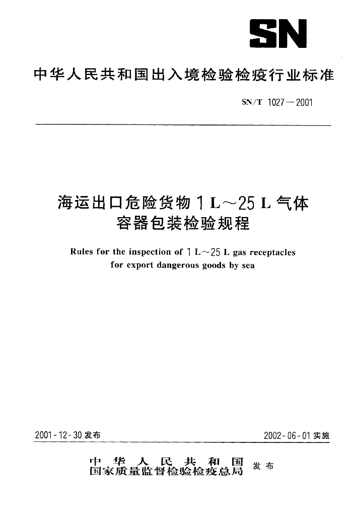 SN/T 1027-2001 海运出口危险货物1 L~25 L气体容器包装检验规程