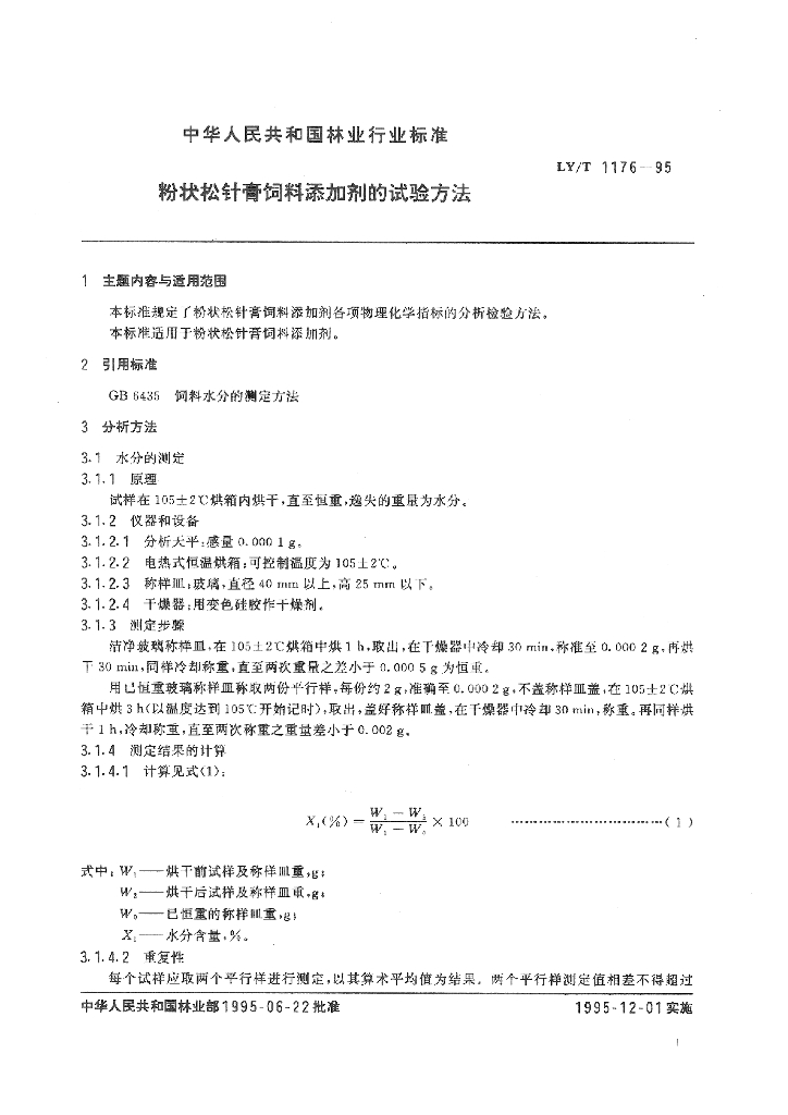 LY/T 1176-1995 粉状松针膏饲料添加剂的试验方法
