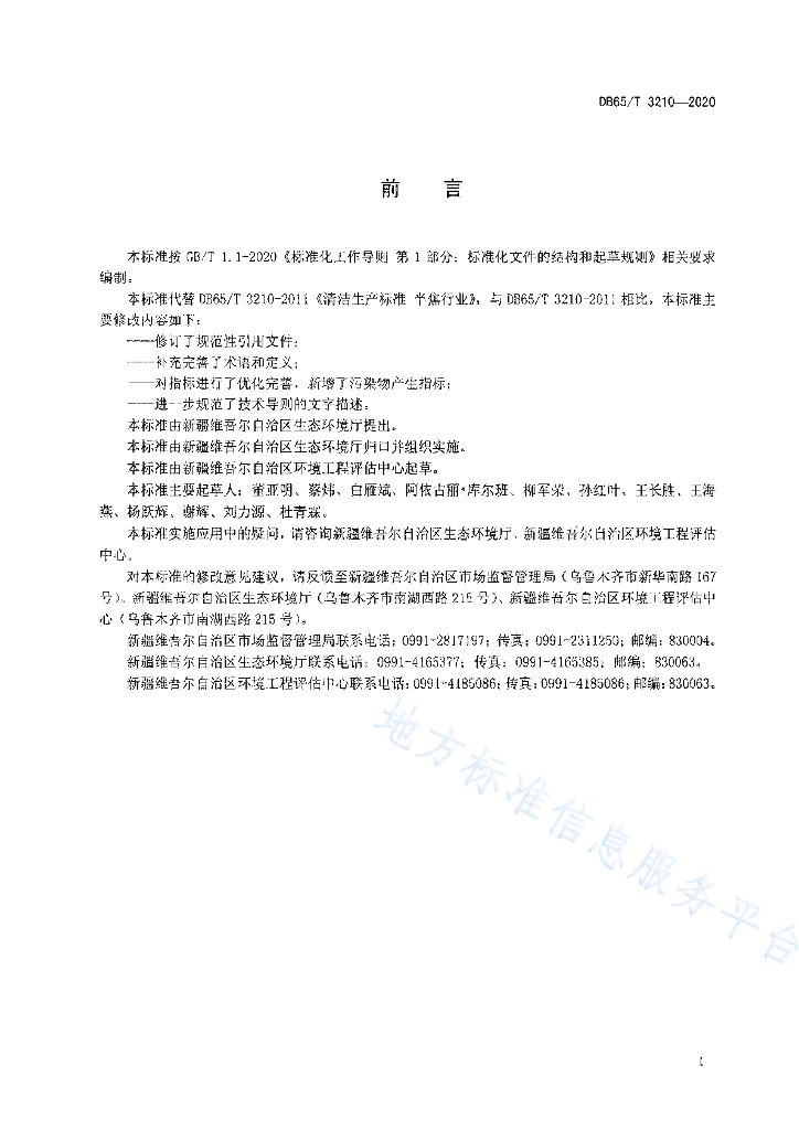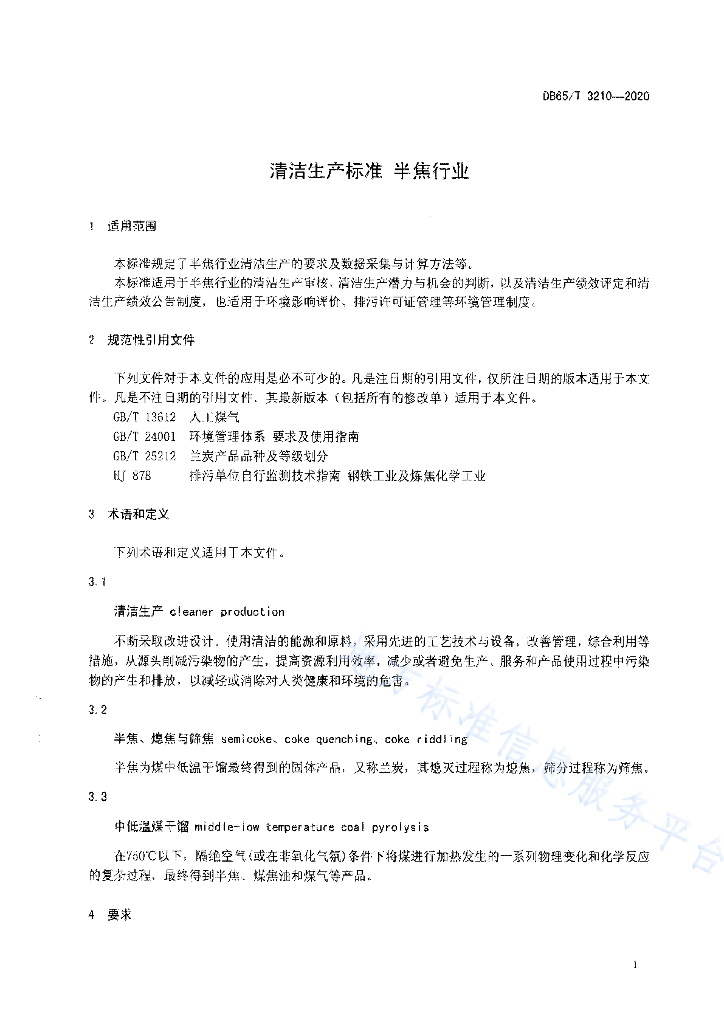 DB65/T 3210-2020 清洁生产标准 半焦行业