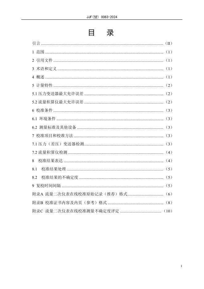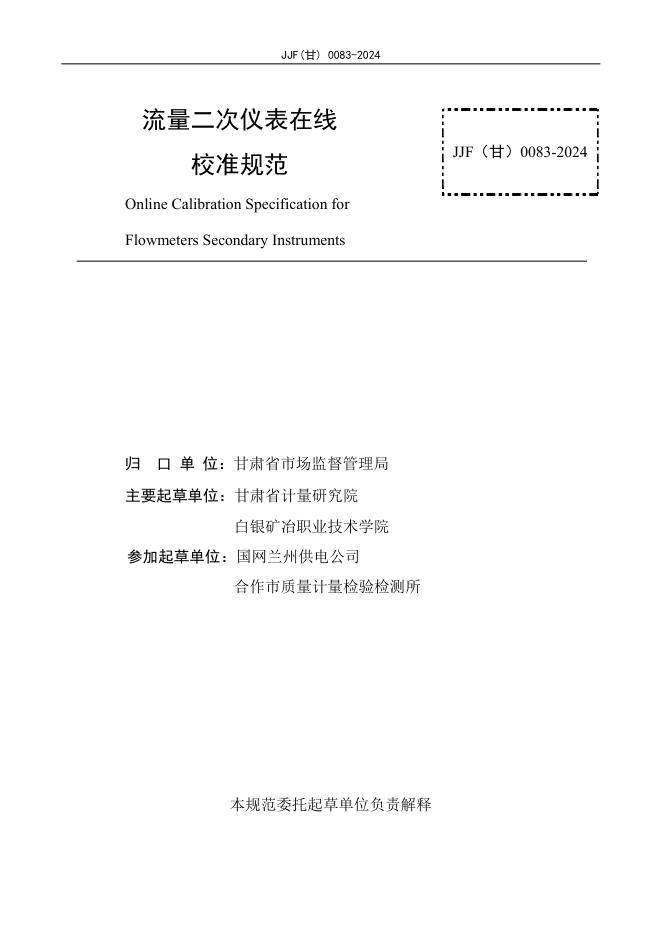 JJF(甘)0083-2024 流量二次仪表在线校准规范