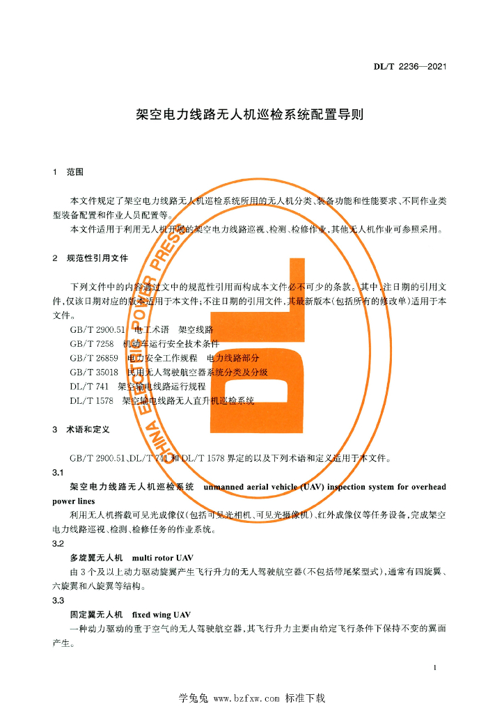 DL/T 2236-2021 架空电力线路无人机巡检系统配置导则