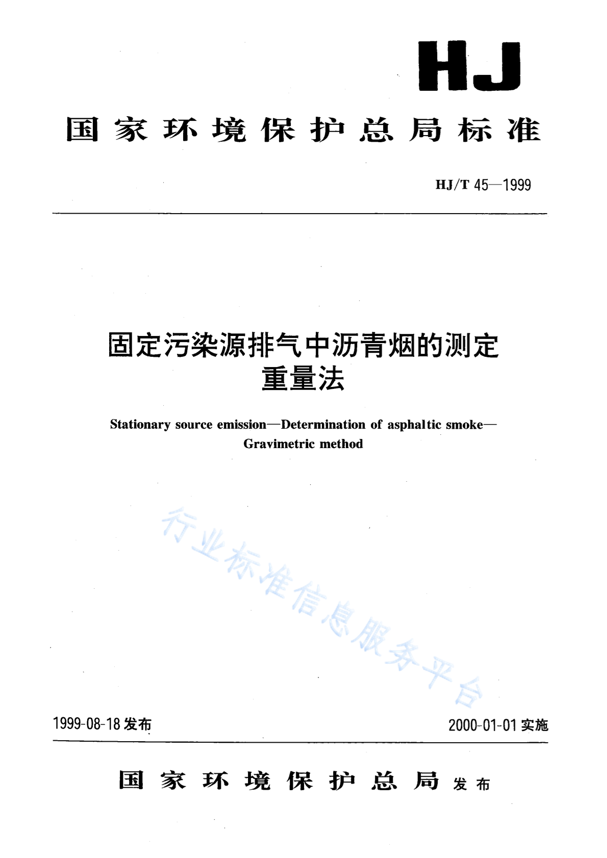 HJ/T 45-1999 固定污染源排气中沥青烟的测定 重量法