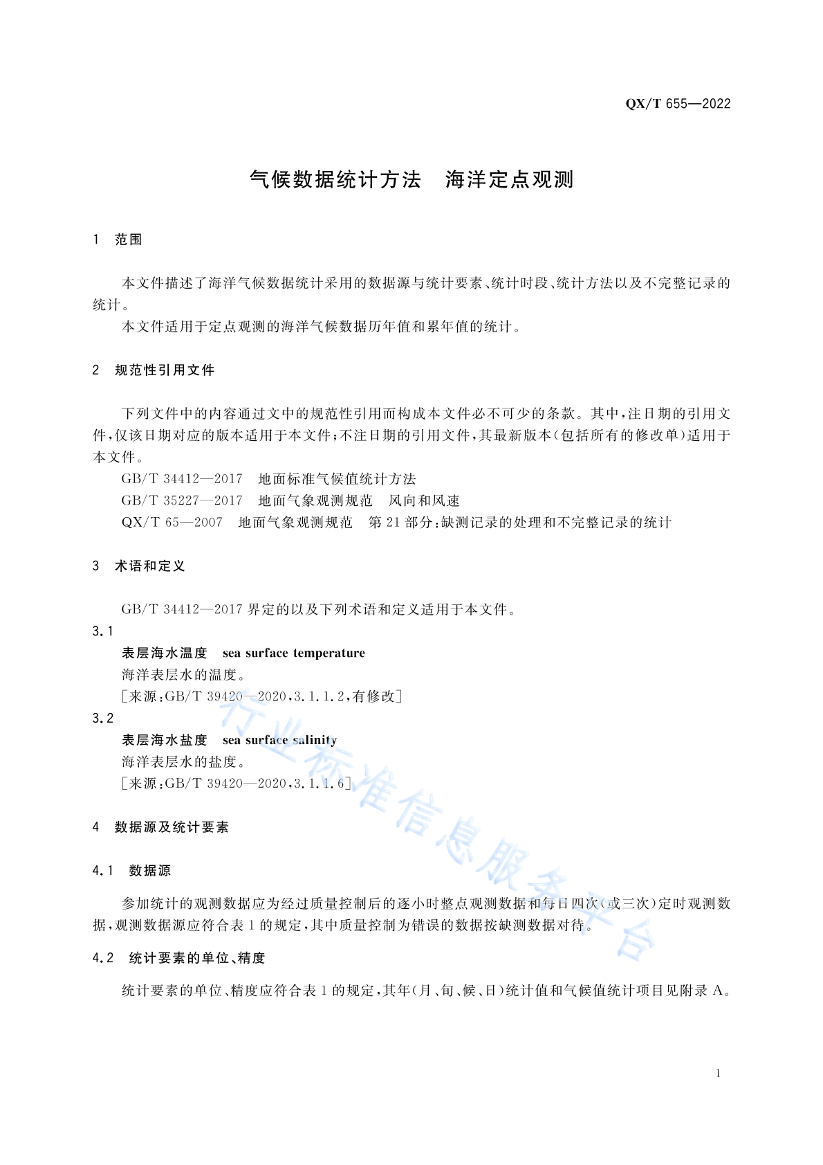 QX/T 555-2022 气候数据统计方法 海洋定点观测