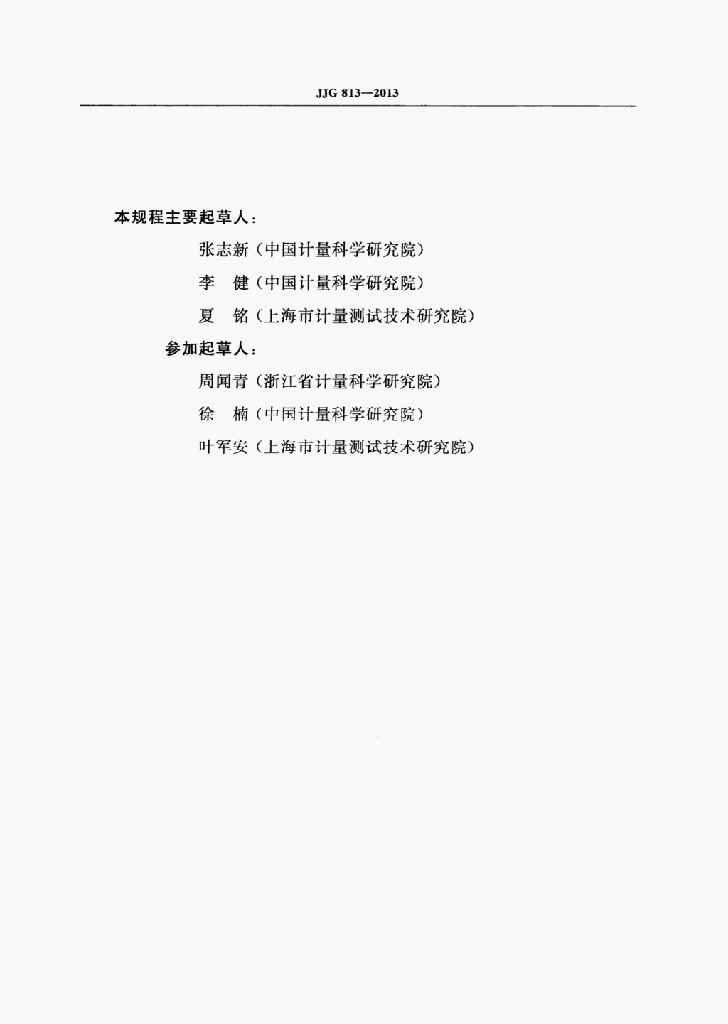 张志新(中国计量科学研究院)、李健(中国计量科学研究院)、夏铭(上海市计量测试技术研究院)、周闻青(浙江省计量科学研究院)、徐楠(中国计量科学研究院)、叶军安(上海市计量测试技术研究院)