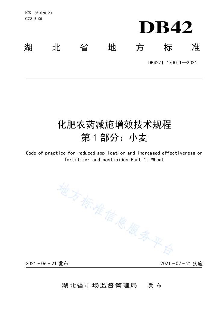 DB42/T 1700.1-2021 化肥农药减施增效技术规程 第1部分:小麦