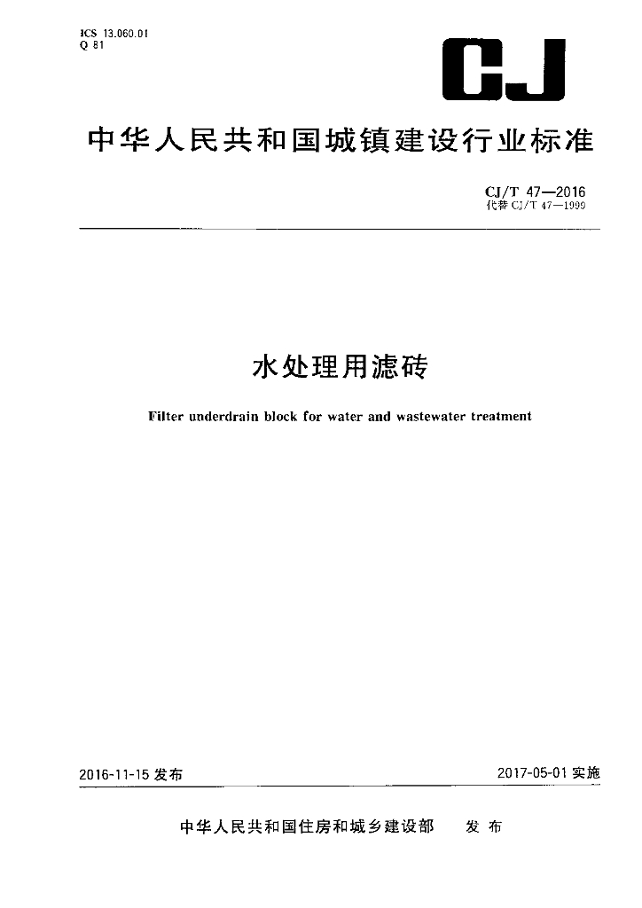 CJ/T 47-2016 水处理用滤砖