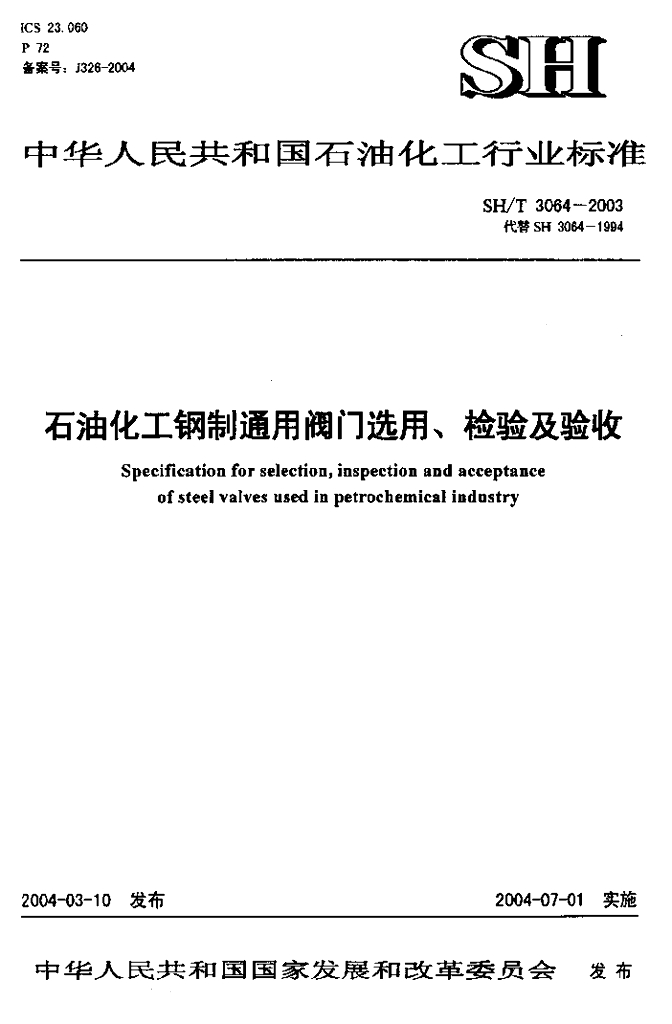 SH/T 3064-2003 石油化工钢制通用阀门选用、检验及验收