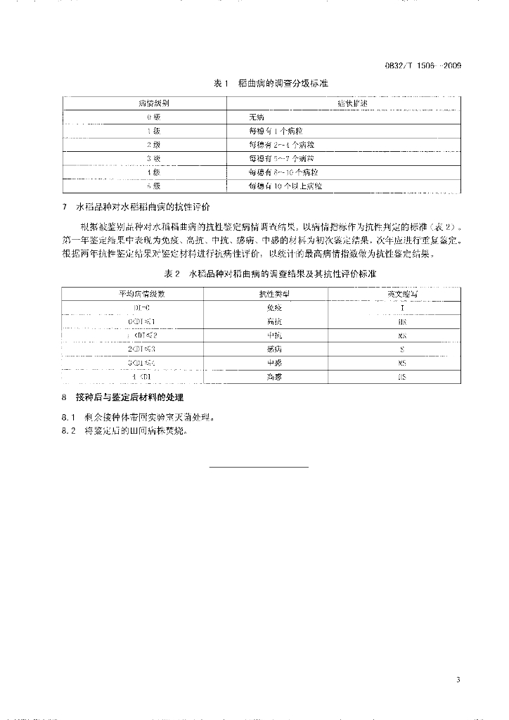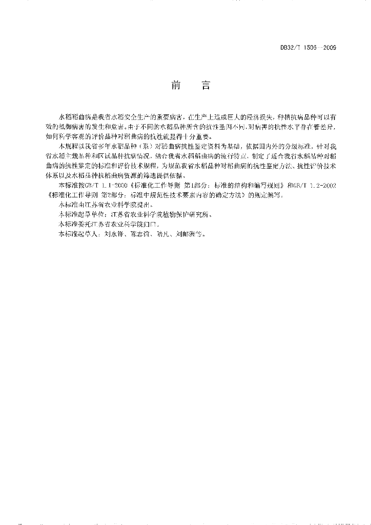 DB32/T 1506-2009 水稻品种(系)抗稻曲病鉴定方法与抗性评价技术规程
