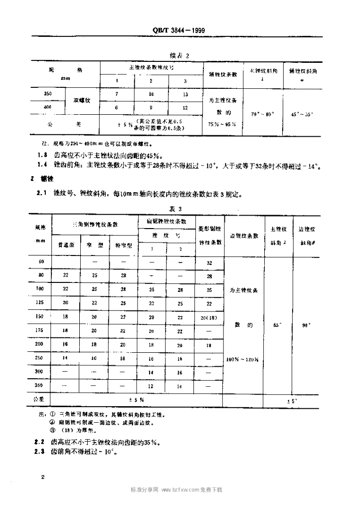 QB/T 3844-1999 锉纹参数