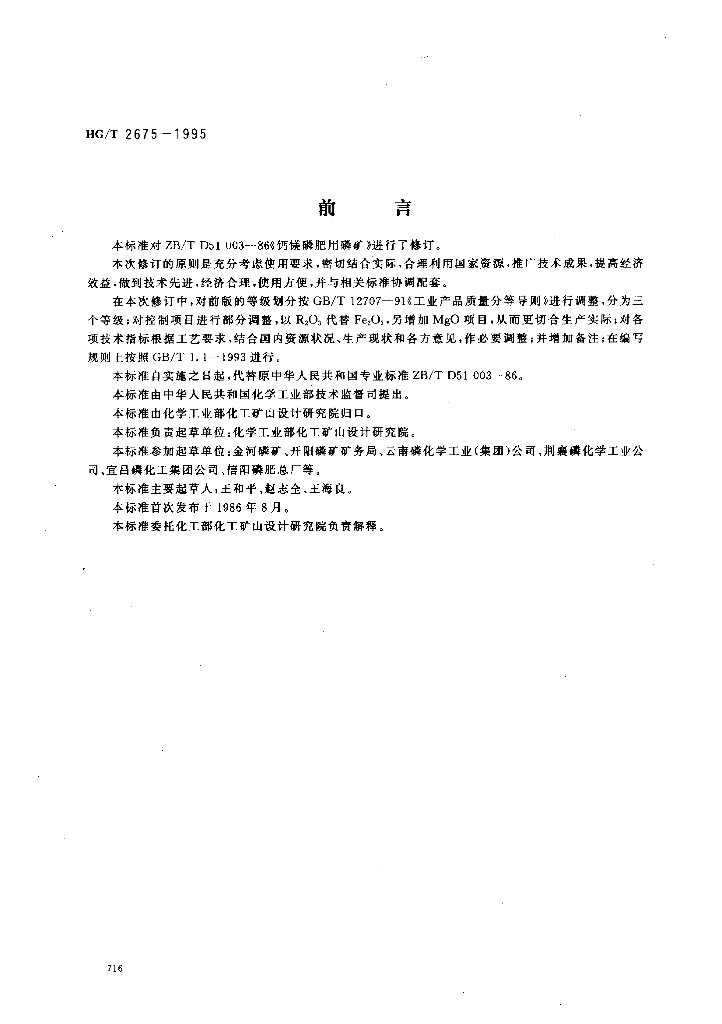 HG/T 2675-1995 钙镁磷肥用磷矿石